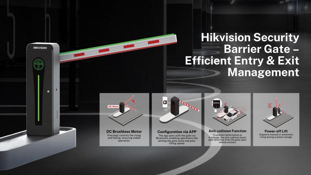 The Hikvision Barrier Gate Parking System offers a smart and efficient solution for vehicle access and parking management. By integrating ANPR cameras, barrier gates, and parking management software, it enables automated entry and exit, accurate vehicle recognition, and smooth traffic flow. Built for reliability and high performance, the system enhances security, reduces congestion, and improves user experience—ideal for commercial buildings, residential areas, and public parking facilities.