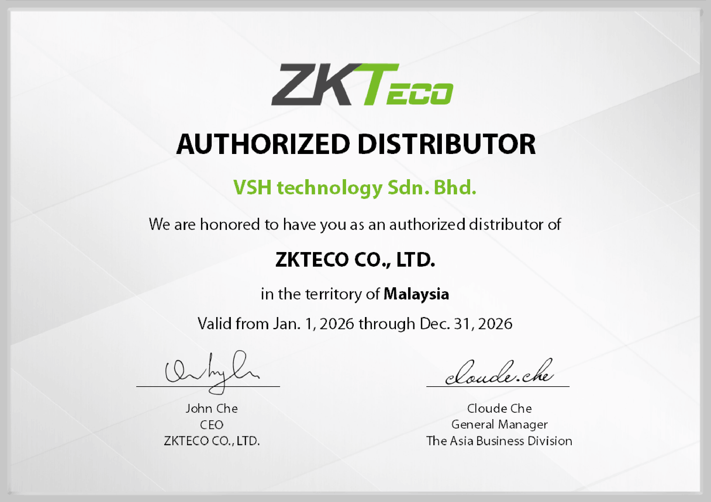VSH Technology proudly serves as an official ZKTeco Authorized Distributor In Malaysia, a globally renowned manufacturer specializing in biometric verification, access control systems, and smart security solutions. With this authorization, VSH delivers only genuine, up-to-date products backed by full manufacturer warranty and strong technical expertise.
