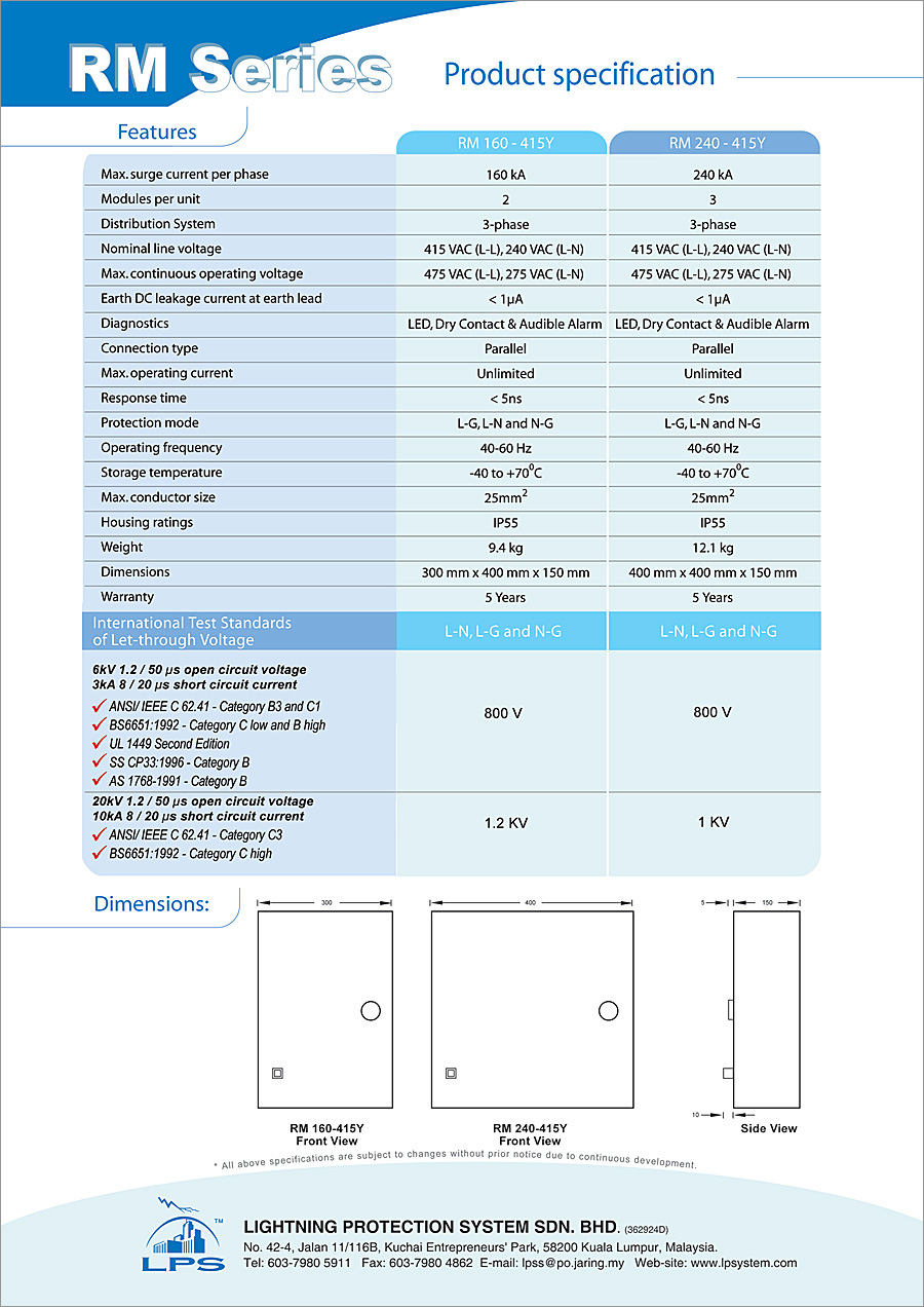 Overall, the LPS RM 160 & 415Y stands out as a dependable solution for protecting valuable assets, improving system resilience, and reducing maintenance costs over time.