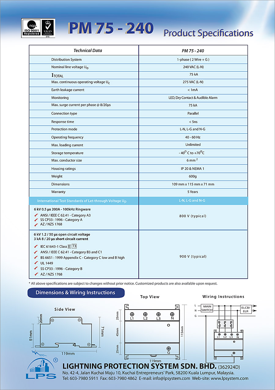 The LPS PM75 Series  delivers reliable and high-performance surge protection for critical electrical and electronic systems. Engineered for industrial and commercial environments, it effectively safeguards equipment from transient overvoltages, lightning strikes, and other electrical disturbances.