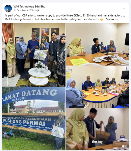 Recently, VSH supplied several ZKTeco D160 handheld metal detectors to SMK Puchong Permai, helping their safety team conduct spot checks faster and more effectively.